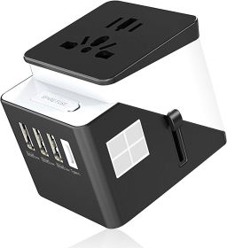 3 USB  1 Typc C International Power Adapter For Europe, UK, China, Australia, Japan And More 200 Countries (Option: Black and white)